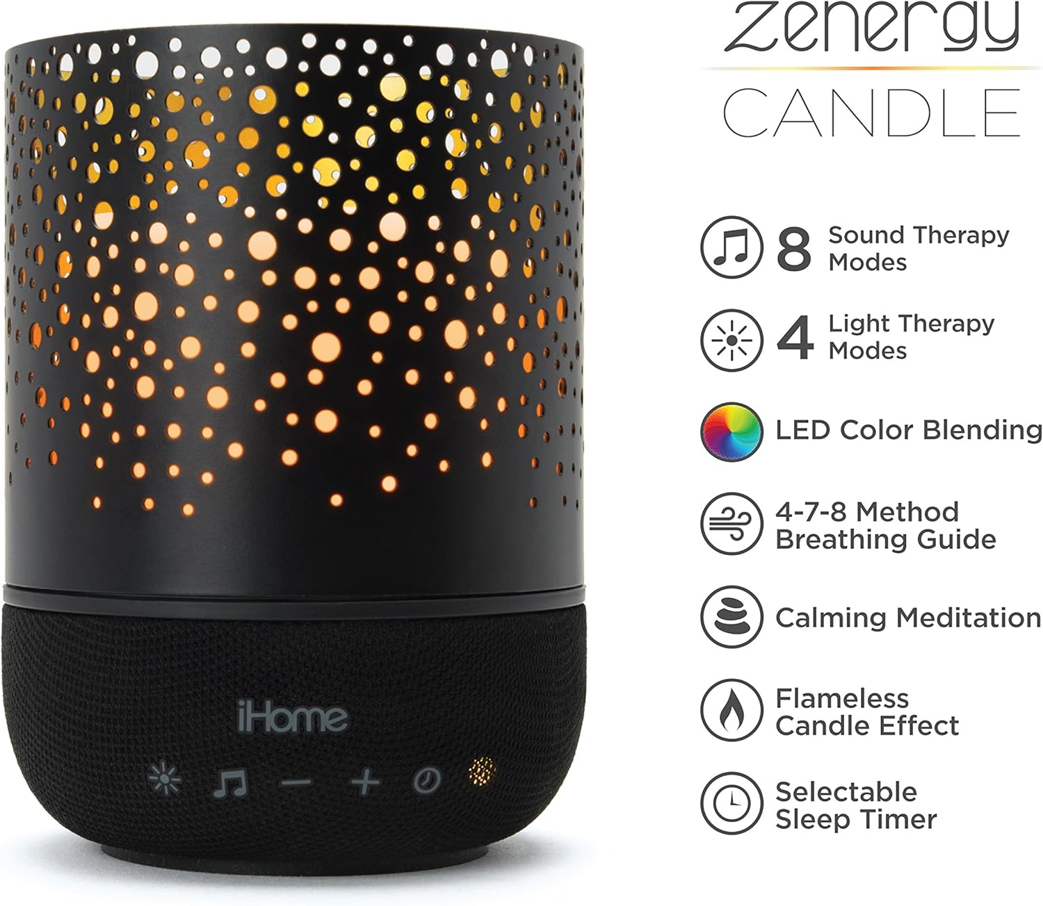 Ihome Zenergy Meditative Light Sound Therapy Candle Breathe